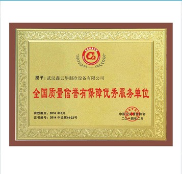 鑫云華制冷榮獲全國質(zhì)量信譽